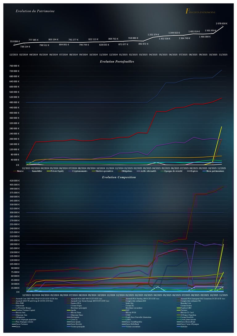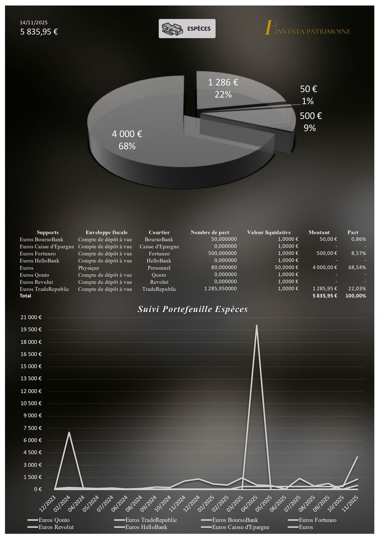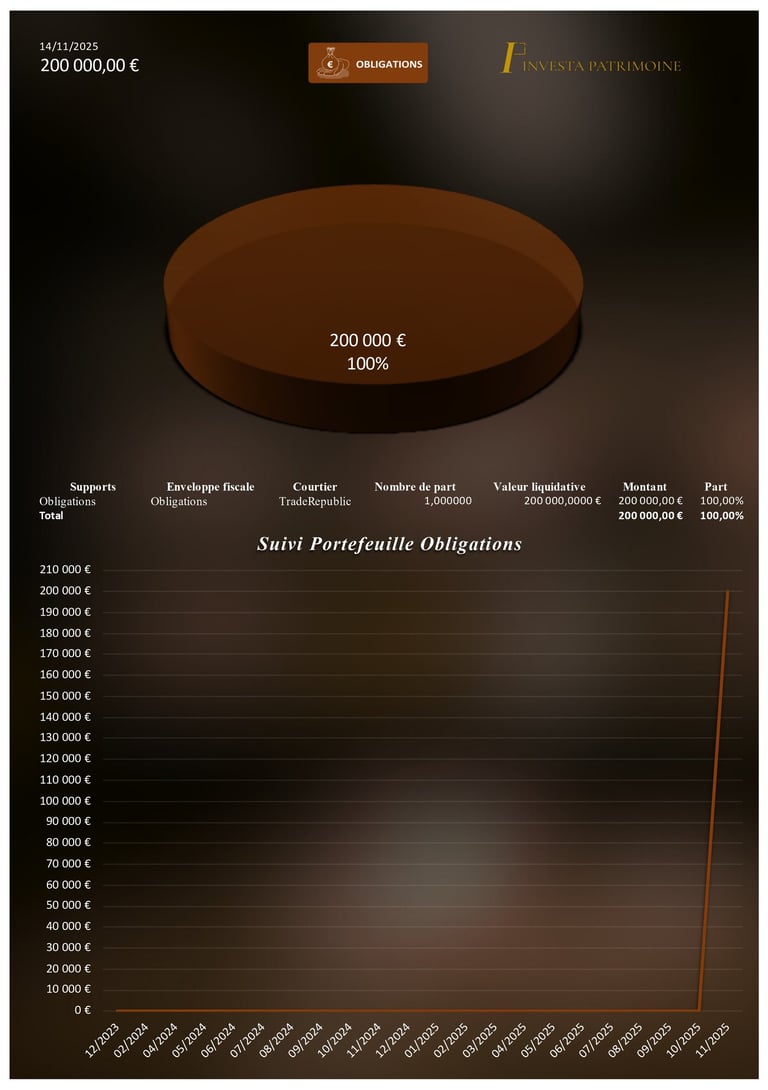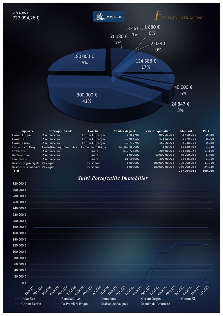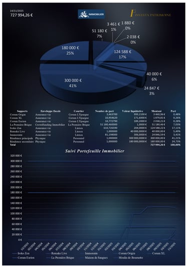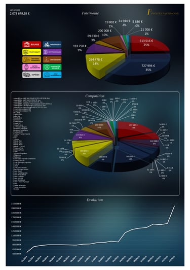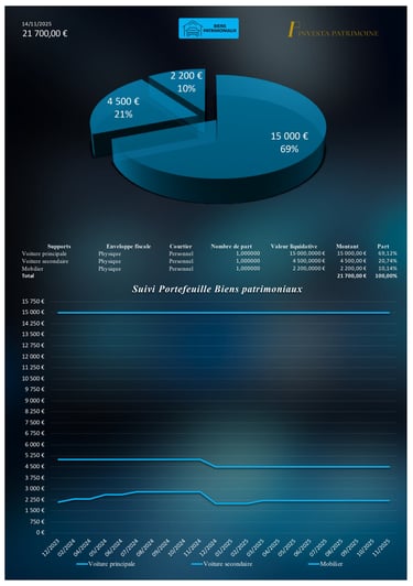 Un suivi régulier de l’évolution de votre patrimoine, avec une mise à jour périodique de votre Plaquette Patrimoniale, permet de garder une vision précise de vos actifs, de vos dettes et de l’allocation de vos investissements, et d’ajuster votre stratégie en fonction des évolutions du marché et de vos objectifs.