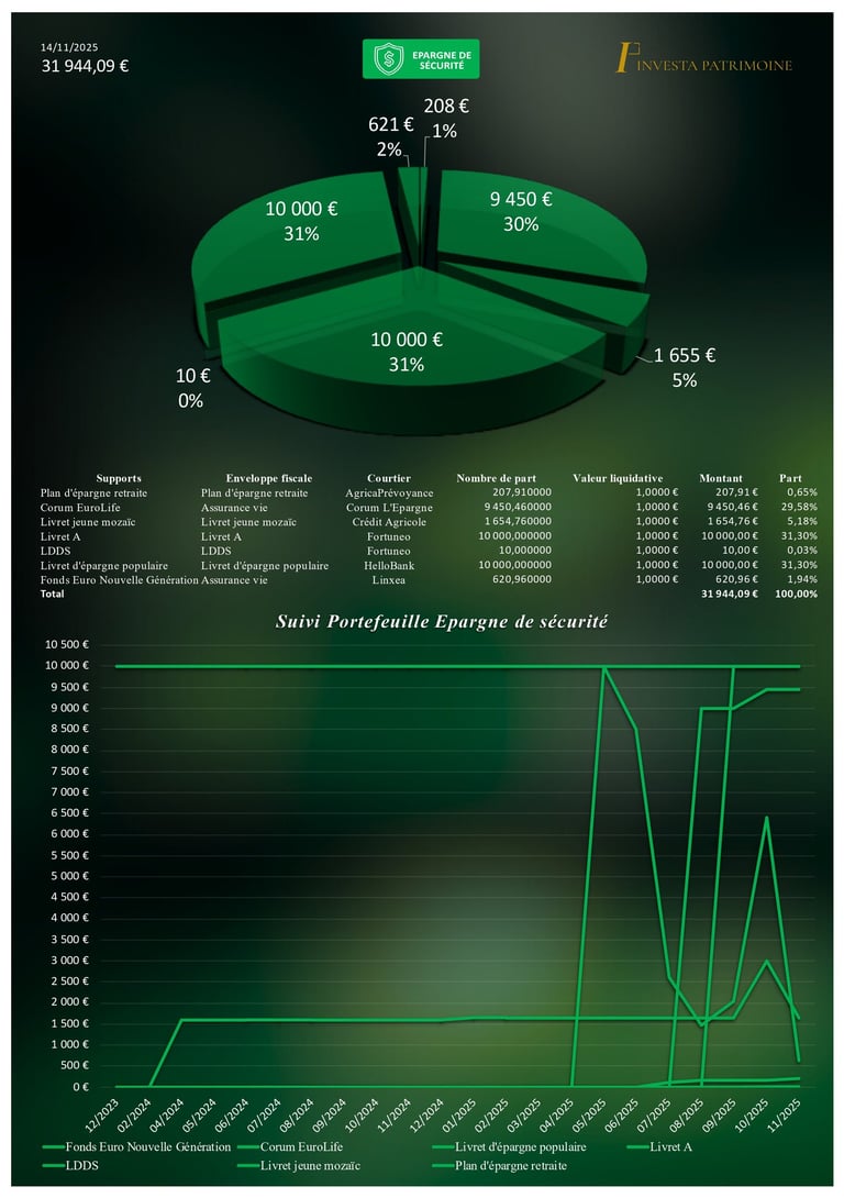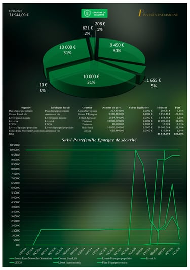 Une somme d'argent en euros, équivalente à quelques mois de salaire, permettant de subvenir à ses besoins sur plusieurs mois, ou de faire face à un imprévu coûteux, doit être allouée à des supports à capital garanti tels que les livrets réglementés. Bien que ce placement s'avère perdant d’avance face à l’inflation en plaçant son argent de la sorte, il ne faut pas sous-estimer l’importance de cette épargne de sécurité pour affronter plus sereinement les aléas de la vie et la volatilité de ses investissements.