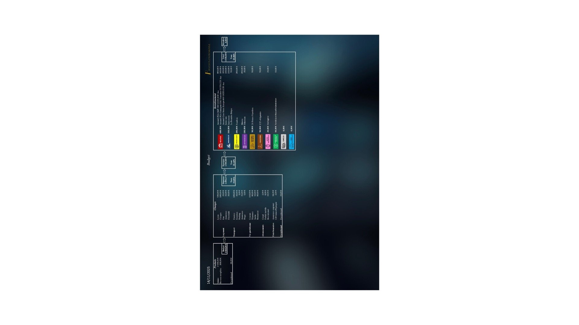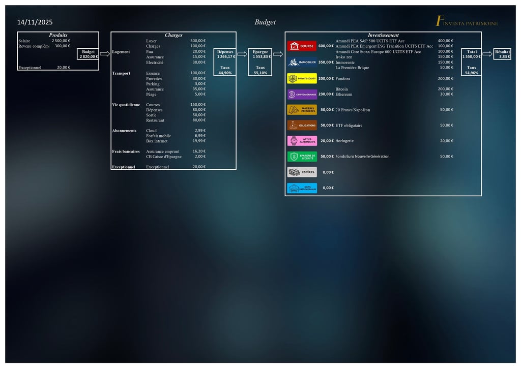 Construction de votre budget recensant toutes vos entrées et sorties, relatant votre épargne