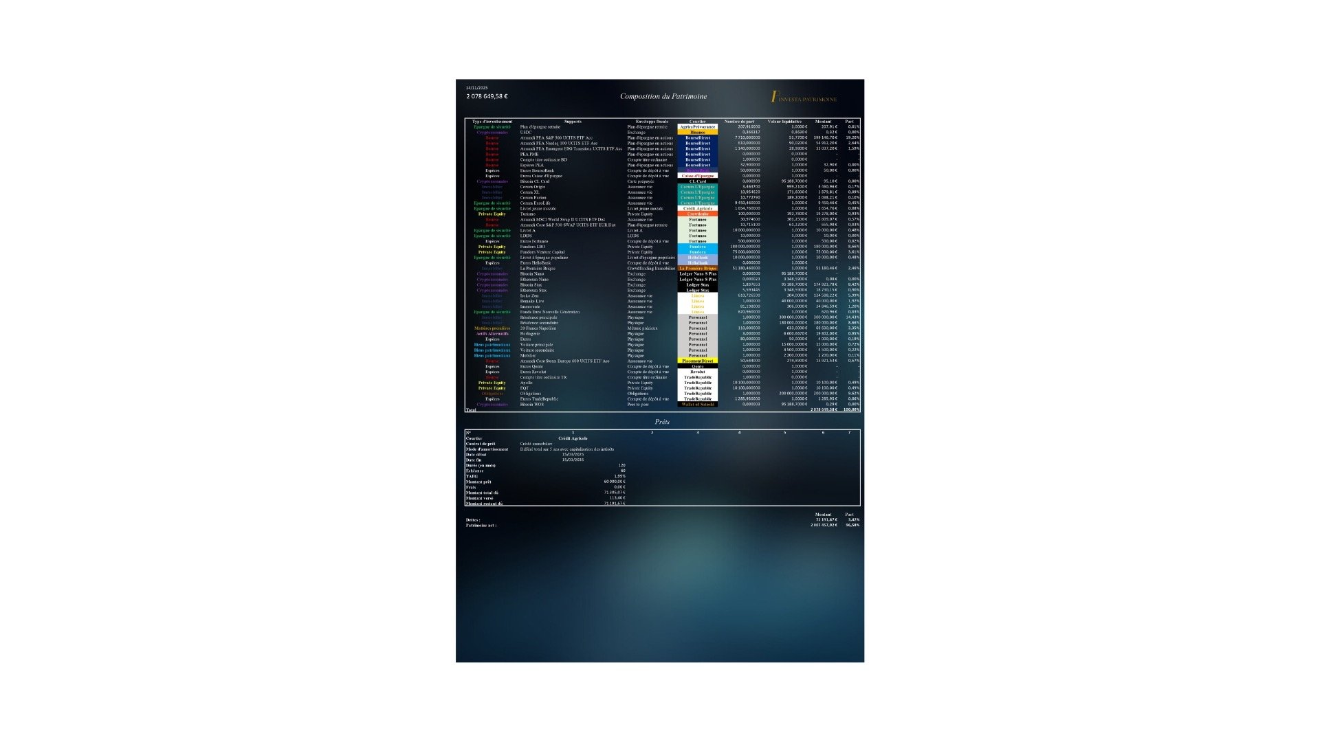 Inventaire de votre Patrimoine au global et par portefeuille d'actifs